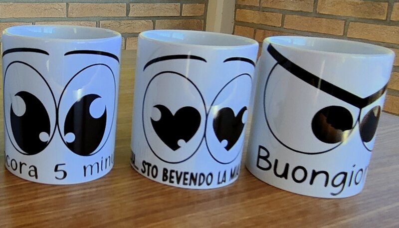 Tazza decorata con occhioni, frasi, foto e immagini!